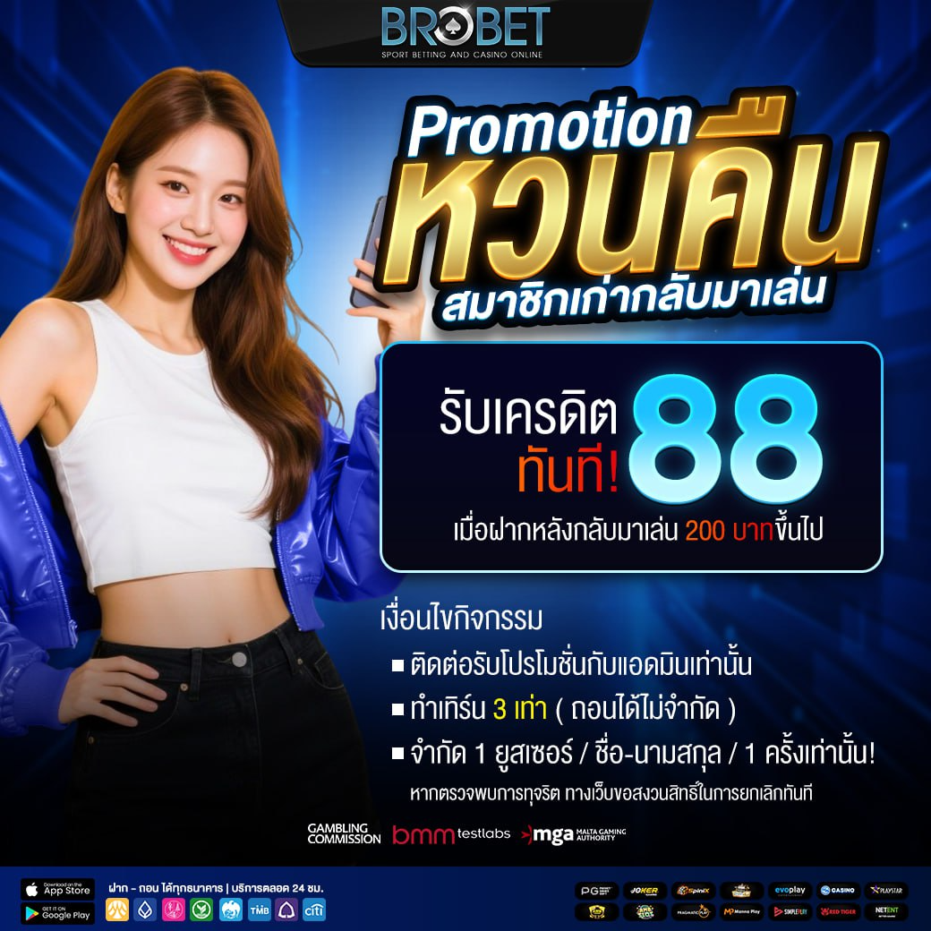 นอกจากนี้ BROBET ยังมีโปรโมชั่นและสิทธิพิเศษมากมายที่ออกแบบมาเพื่อเพิ่มโอกาสและความคุ้มค่าให้กับผู้เล่นอย่างต่อเนื่อง ทั้งโบนัสต้อนรับ โปรโมชั่นคืนยอดเสีย และกิจกรรมพิเศษต่างๆ ที่ช่วยเพิ่มความสนุกและโอกาสในการทำกำไร หากคุณกำลังมองหาแพลตฟอร์มพนันออนไลน์ที่ครบ จบ และเชื่อถือได้ BROBET คือคำตอบที่พร้อมพาคุณเปิดประสบการณ์ใหม่ของโลกเดิมพันออนไลน์อย่างแท้จริง